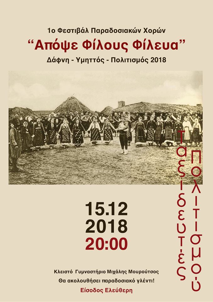 Στις 15 Δεκεμβρίου 2018 πραγματοποιήθηκε το 1ο Φεστιβάλ Παραδοσιακών Χορών των Ταξιδευτών Πολιτισμού "Απόψε Φίλους Φίλευα"! |