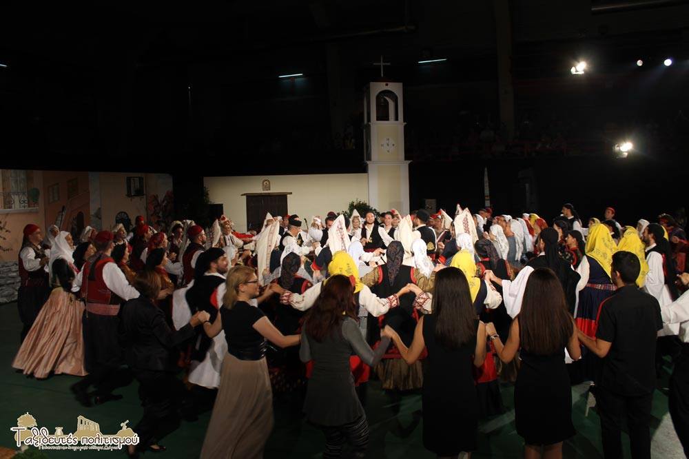 Σήμανε η καμπάνα και οι κύκλοι του χορού τρανέψαν! Και γέμισε η πλατεία, η δικιά μας πλατεία, μουσικές, χορούς και τραγούδια. Η γιορτή ξεκίνησε με χαμόγελα στα χείλη, μελωδίες που μας ταξίδεψαν στο χώρο και το χρόνο και χορό από την ψυχή μας! Στις 5 Οκτωβρίου 2014 στο Κλειστό Γυμναστήριο της Δάφνης, στήθηκε μια γιορτή και όχι μια παράσταση. Μια γιορτή για όλους: για τους χορευτές, τους μουσικούς, τους συντελεστές και κυρίως για όλους εσάς που γεμίσατε κάθε γωνιά της «πλατείας» μας και με τη θετική σας ενέργεια και διάθεση δώσατε ώθηση στην προσπάθειά μας. |