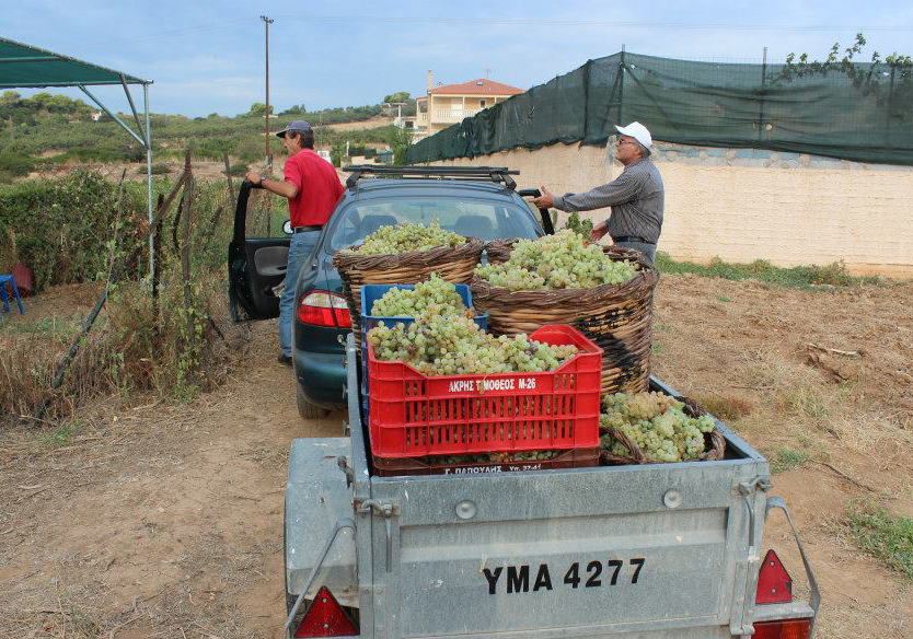 «Οίνος ευφραίνει καρδίαν ανθρώπου» και από καρδιάς δημιουργήθηκε το αμπελάκι μας! Οι αμπελουργοί το κλάδεψαν, το σκάλισαν, του αφαίρεσαν τους περιττούς βλαστούς, το επέβλεψαν και πλέον ήρθε η εποχή του τρύγου. Την Κυριακή 15 Σεπτεμβρίου 2013 και ώρα 07:30 το πρωί αναχωρήσαμε από τα γραφεία του Συλλόγου με κατεύθυνση το χωράφι όπου τρυγήθηκαν τα κλήματα. Φορτώθηκαν τα σταφύλια στις κόφες, και μεταφέρθηκαν στο Σύλλογο. |